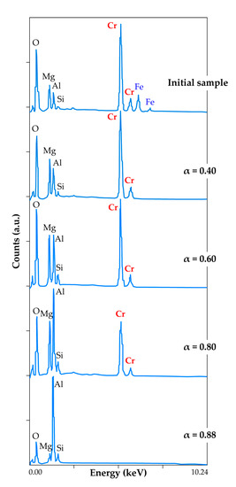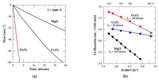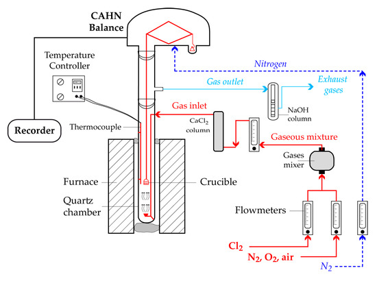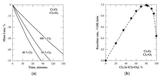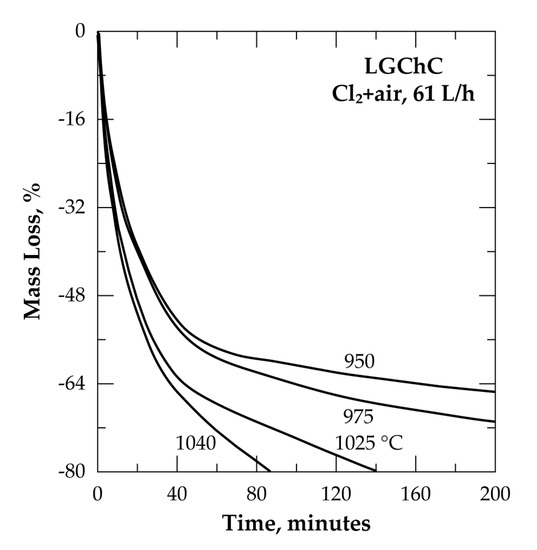 - Kanari, N.; Gaballah, I.; Allain, E. Kinetics of oxychlorination of chromite part II. Effect of reactive gases. Thermochim. Acta 2001, 371, 75–86. [Google Scholar] [CrossRef]