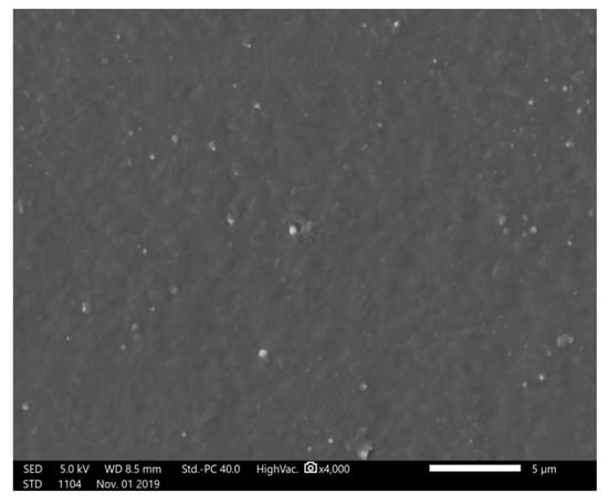 The differences in heat deflection temperatures of composite materials with PEEK made of the matrix and tungsten (metal) as a reinforcing agent under the load of 0.45 MPa are presented in Table 4. The heat deflection temperature of 50% PEEK/tungsten composite material was estimated to be 250.0 °C, and that of 70% PEEK/tungsten composite materials was 139.1 °C. The addition of tungsten led to a decrease in the heat deflection temperature of the PEEK composite as a result of the enhanced heat conductivity and specific heat capacity of the material. Under 0.45 MPa load, the increase in temperature led to faster rise in the heat transfer rate of tungsten (metal) than boron carbide (non-metal), and tungsten absorbed more heat than boron carbide. An electron micrograph of the PEEK test piece surface was displayed in Figure 16.