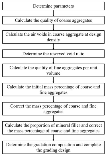 In this study, the small particle size ultra-thin asphalt mixture was designed according to the flow chart shown in Figure 3. The design of the asphalt mixture mainly involves two phases: determination of aggregate gradation and determination of the optimal asphalt-aggregate ratio.