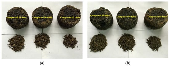 Compaction process: (a) Compaction by steel roller; (b) Compaction by rubber roller.