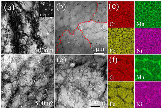 - Otto, F.; Dlouhý, A.; Somsen, C.; Bei, H.; Eggeler, G.; George, E.P. The influences of temperature and microstructure on the tensile properties of a CoCrFeMnNi high-entropy alloy. Acta Mater. 2013, 61, 5743–5755. [Google Scholar] [CrossRef]