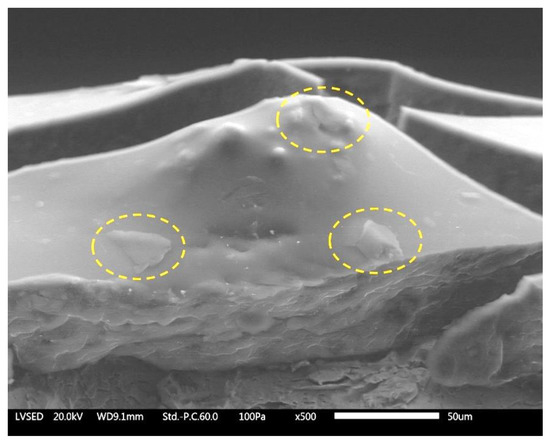 Internal porosity in the SG layer (in the red square), observed with SEM.