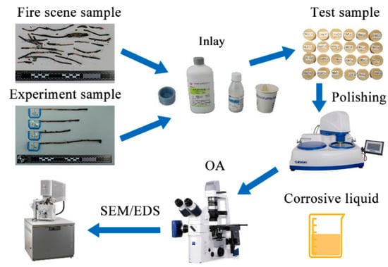 - Xie, D.; Wang, W.; Lv, S.; Deng, S. Visual and oxide analysis for identification of electrical fire scene. Forensic Sci. Int. 2018, 285, e21–e24. [Google Scholar] [CrossRef]