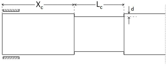 The obtained element matrices were developed by Gayen [] for FG shaft elements. In the present work, the element matrices were developed for corroded FG shaft elements. The corrosion defect is introduced into the FG shaft element through the removal of mass on the circumference of the FG shaft element, hence reducing the radius of the shaft. The reduction in the radius of the FG shaft element is denoted as the corrosion depth . The matrices for the corroded FG shaft element with a Young’s modulus , Poisson’s ratio , rigidity modulus , shear factor , density , mass per unit length , diametric moment per unit length , polar moment per unit length , area of cross-section and area moment of inertia are as follows: