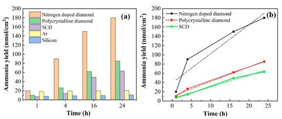 - Bandy, J.A.; Zhu, D.; Hamers, R.J. Photocatalytic Reduction of Nitrogen to Ammonia on Diamond Thin Films Grown on Metallic Substrates. Diam. Relat. Mater. 2016, 64, 34–41. [Google Scholar] [CrossRef]