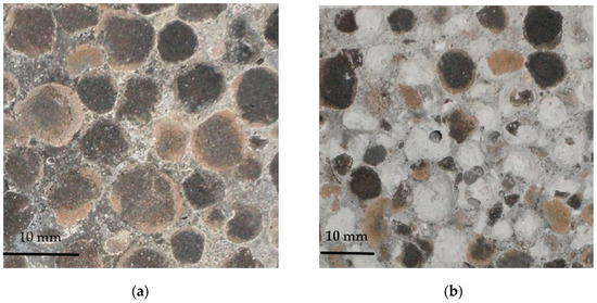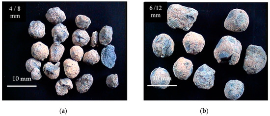 Sintered fly ash aggregate: (a) fraction 4/8 mm and (b) fraction 6/12 mm.