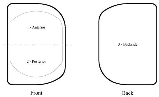 The front and back of the meniscal bearings were divided into three sections. Surface damage grading scores were assigned for each section using light stereoscopic examination and a subjective grading score.