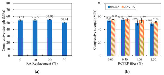 Compressive strength: (a) RAC; (b) fiber-reinforced concrete and RFRAC.