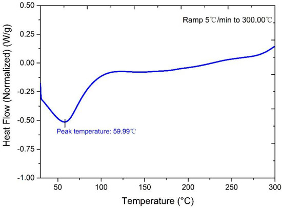 It is well known that heat treatment of fibrous materials can speed up the motion of molecules in the pores and accelerate the outgassing. The moisture and volatile substances attached at the surface of fibers can be transformed into superheated gases and then located in the pore space after high temperature heat treatment up to 180 °C. Therefore, the drying process eased subsequent vacuum processes. According to the research in [13], the straw was easy to carbonize because of its biologic characterization. It can be seen from Figure 1 that there is an exothermic peak at approximately 60 °C, which means the free water on straw walls and lumens starts evaporating.