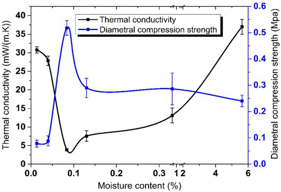 Relationship between thermal conductivity, diametral compression strength and moisture content.