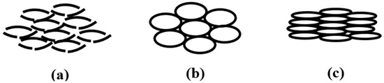 The straw core material has a horizontal distribution in the direction of thickness, layer by layer, with the straw fibers staying oriented and uniform in the plane of the side view. Consequently, radial forces were applied on each straw unit after the vacuum process, as shown in Figure 6b. In addition, a single straw unit has the shape of a hollow circular cylinder with a large void in the center, which seems to be a shortcut for gas conduction. However, the straw core material is multilayered like glass fiber felt so that the free gas conduction through the fiber void only happens in the plane orientation, rather than the vertical direction of VIP. Thus, the void in center of the straw does not have an efficient effect on the gas heat conduction across the panel.