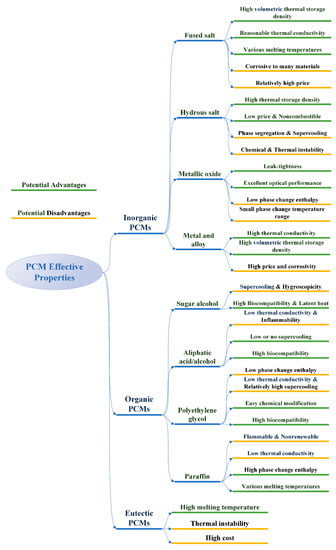 Figure 3 summarizes the potential advantages and disadvantages of the three kinds of PCMs.