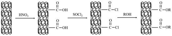 The flow diagram with the formation reaction steps of grafted CNTs.3.2.4 Metal oxide.