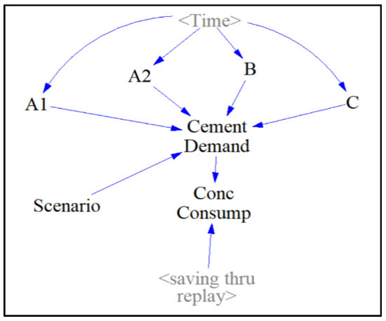 Complex systems can originate from the encounter of external influences. Such feedback structures include S-shaped growth, S-shaped growth with overshoot, and overshoot and collapse (Figure 3b–d). S-shaped growth occurs when the system experiences an extraordinary amount of positive feedback, and eventually becomes constrained with negative feedback after experiencing an exponential growth. The system exhibits an S-shaped function that ultimately reaches equilibrium. When a negative feedback experiences interruption of its purpose, it will overshoot nearing the beginning of its inception. The overshoot can cause some delays in achieving the end goal of the system; hence, the system structure is an S-shaped growth with overshoot. On some occasions, the system would not be able to recover from an excessive amount of positive feedback, resulting in collapse, which is called overshoot and collapse. Most engineering systems are more complex and dynamic than linear or open systems. Accordingly, System Dynamics has been implemented in diverse fields of civil engineering, such as water resource management, construction management, infrastructure planning and development, etc. However, deploying system dynamics modeling for the sustainability of alkali-activated materials has not been accessible in the open literature.