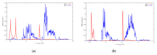 Projected DOS of SbS2Ga2. (a) On the Sb1 atoms; (b) On the Sb3 atoms.