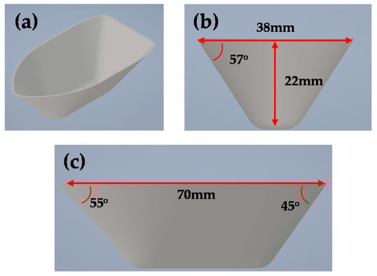 CAD design of the ship-hull shape with (a) isometric, (b) front, and (c) side views.