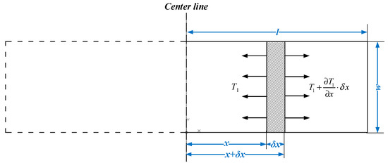 Assuming that there is an infinitesimal element of the PZT and the length of the element is defined as , the element situates at a distance x from the centroid under dynamic equilibrium condition. The illustration of the infinitesimal element of the PZT is shown in Figure 2.