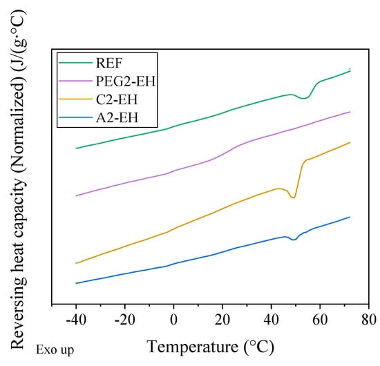 3.3. Modulated Differential Scanning Calorimetry—Thermal Characterization