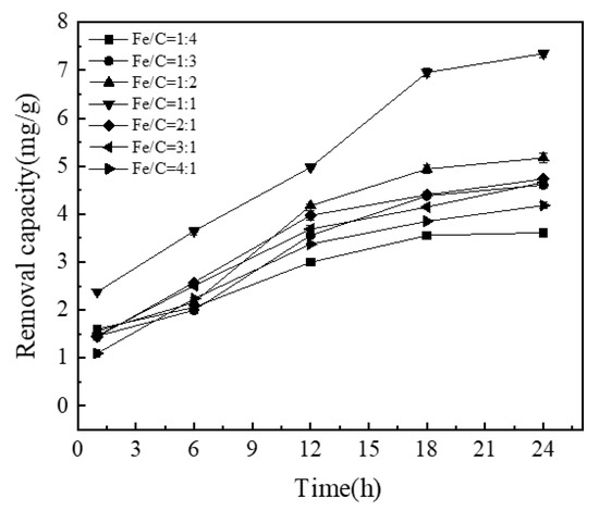 3.1.3. Effect of Fe/C Ratio of NICLS on Removal Capacity