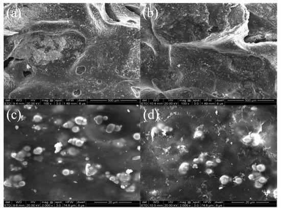 SEM images of the NICLS surface before (a,c) and after (b,d) the reaction.