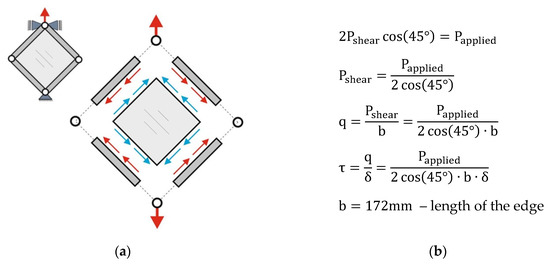 The plate, fixed in the presented way, was subjected to a pure shear. The value of the shear modulus was determined based on Equation (1):