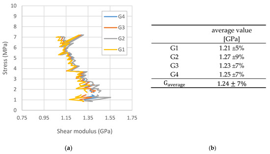 On the other hand, for each of the shear strain angles, based on Equation (1), the average values of the shear modulus were marked and its final average value was determined (Figure 9).