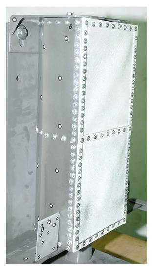 In general, due to the necessity of minimizing the mass of an object, the loss of stability of the skin under operating conditions is permissible, as long as this phenomenon has an elastic character and occurs locally, i.e., within the segment of the skin and limited by skeletal elements [3,4]. In the case of metal structures, such a state is achieved through the use of thin-walled skins, which are often reinforced with a number of stiffening elements [5,6,7,8].