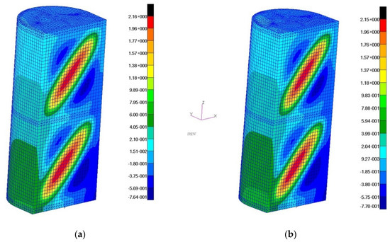 The model deformation distributions for the maximum value of the applied load were also obtained (Figure 19).