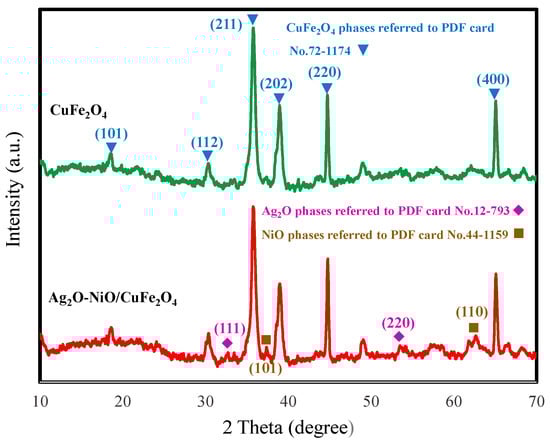 XRD patterns of CuFe2O4 and Ag2O-NiO/CuFe2O4.