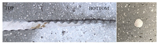 Figure 17 shows the formation of voids for the corrugated fibers. It varies depending on the position of the fiber in the mortar and on the manual handling. Furthermore, turning the fiber after insertion might lead to a better bond [29]. This might be implemented into the robotic application. Additionally in this case, the adaption of the rheology of the mortar should be investigated.