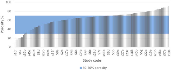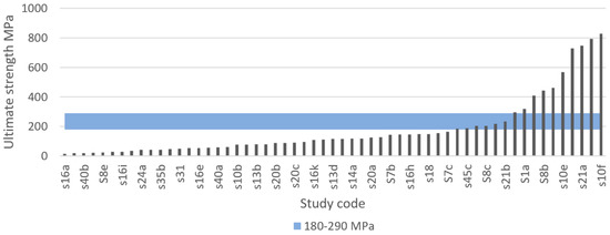 Once all applicable literature had been identified, the extracted data were used to further extend the first step of the QbD system for fully porous Ti bone implants. Moreover, the data were also used to compare the different characteristics of Ti porous bone implants with natural bone tissue, and also to identify the most relevant characteristics that need to be imitated in the development of fully porous Ti bone implants.