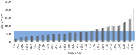 The pores in cancellous bone are ellipsoidal in the natural direction of loading and are usually 300–600 µm wide [147]. The interconnectivity between the pores of cancellous bone is essential for nutrient and waste diffusion.
