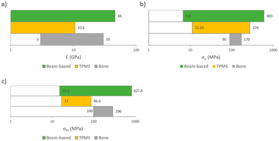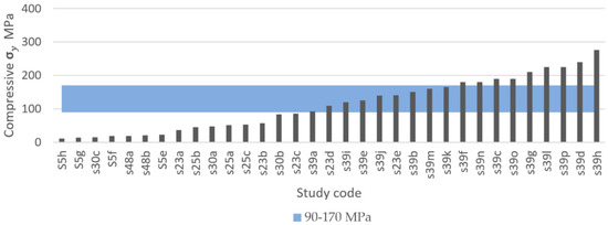 To achieve adequate strength in bone implant design, one must understand the strength requirement of bone. Especially cortical bone must be considered, because the strength of such tissue is the minimum strength required by the implant. The compressive yield point of bone represents the threshold from where the structure accumulates irreversible deformation. Unlike metals such as steel, the yield point cannot be clearly distinguished, and it is rather associated with a continuous transition zone [160]. Furthermore, it has been proven that the compressive yield strength of bone varies depending on the anatomic site [161]. The challenges in determining the yield strength of cortical bone results in varying values in the literature. Researchers have estimated cortical bone to have a compressive yield strength of 133.6 ± 34.1 MPa [162]. The same characteristic was estimated to be 108–117 MPa by Yeni and Fyhrie [163]. Further studies have tested compressive yield strain using uniaxial compression and achieved 141.0 ± 5.0 [164], 111.0 ± 18.6 [165], 112.5 ± 9.5 [166], and 115.1 ± 16.4 MPa [167].