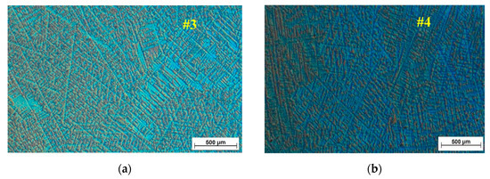 After that, the samples were re-polished and the Vickers micro hardness HV0.5 was measured. Few methods for material characterization (i.e., phase identification via X-ray diffraction (XRD) and optical microscopy) were employed. Tests to identify the phase composition and the type of crystal structure of crystallographic phase were carried out by XRD—Xpert Pro MPD PANalytical diffractometer (Phillips, New York, NY, USA) with CoKα radiation, and a Bruker AXS D8 Advance diffractometer (Karlsruhe, Germany) with Cu-Kα radiation, respectively [16].