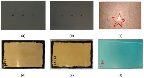 After the insertion of defects, a thin layer of the coating, in liquid form, was applied, avoiding the area of the holes; and with this coating layer still wet, a free film of the same coating, already cured, was put onto the entire surface of the sample. In this process, the uncured coating layer acted as an adhesive for the film adhesion. Two commercial coatings were used on the samples: epoxy coating with glass flakes (samples S1 and S2) and epoxy with ceramic flakes (sample S3) (Table 2). Figure 1 shows the visual aspect of the samples before and after application of the coatings. According to these images, the presence of defects inserted at the metal surface was not observable by visual inspection.