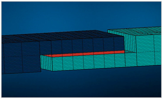 The numerical simulations have been conducted by FEM analysis (Marc 2017.1.0, MSC Software Company, Newport Beach, California), ref. [40], considering two composite coupons joined by an adhesive component, as reported in Figure 2.