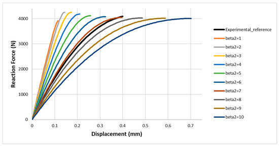 Referring to the previous tables, in the first case, is the only unknown parameter. It will be varied in order to obtain the numerical curves with the same slope or the same maximum load of the reference curve.