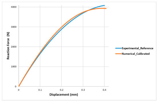 - Calibrate to obtain a numerical curve with the same slope or the same maximum load of the reference curve;