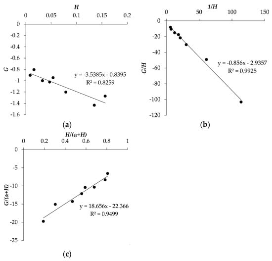 For the inverted Fineman and Ross plot, G and H are plotted according to Equation (4):