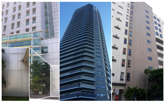 The focus of the presented research case is placed on façade applications, where the sealed joints can be several meters long, as can be seen in Figure 1. The removal and subsequent repairs are often expensive. Thus, a long service life cycle, usually from 10 to 20 years, is expected. However, the sealant is frequently installed between two elements, i.e., façade panels, which often intensifies the stresses the joint has to endure and therefore its service life can be significantly shortened.