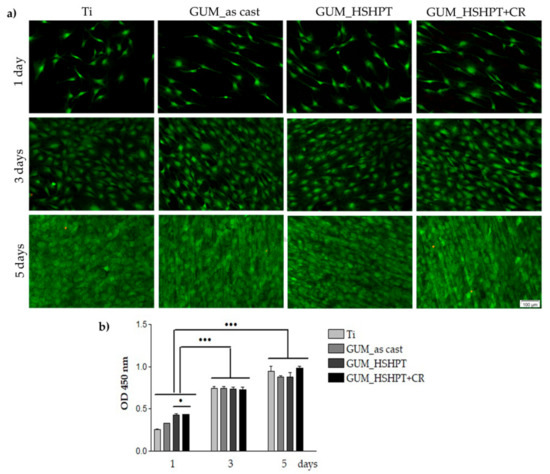 - Cimpean, A.; Mitran, V.; Ciofrangeanu, C.M.; Galateanu, B.; Bertrand, E.; Gordin, D.-M.; Iordachescu, D.; Gloriant, T. Osteoblast cell behavior on the new beta-type Ti–25Ta–25Nb alloy. Mater. Sci. Eng. C 2012, 32, 1554–1563. [Google Scholar] [CrossRef]