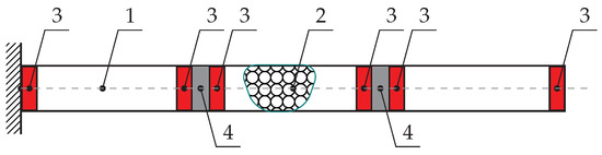 The idea of the investigated system (1—shell type beam structure; 2—Sponge Particles Structure (SPS); 3—balloons; 4—fixed diaphragms).