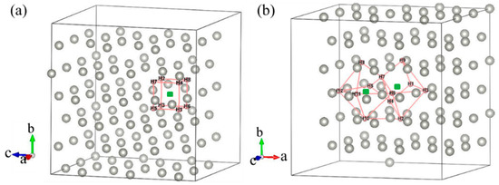 To improve resistance against the blistering phenomenon for neutron targets, Kumada et al. [14] designed a three-layered neutron target system for an accelerator-based neutron source, in which palladium (Pd) is used as an anti-blistering material and is placed between the Be target and the Cu heat sink. This kind of “sandwich” target structure can significantly increase the service life of the neutron target, among which the anti-blistering material is very important to the blistering-resistance and overall service life of the target structure [15,16]. Therefore, it is important to clarify the performance of Pd in the proton irradiation environment. The behavior of hydrogen in metals has attracted a lot of research interest over recent years [17,18,19,20]. Various mechanisms have been proposed to explain the hydrogen embrittlement phenomenon of metals such as blistering, hydride phase formation, enhanced local plasticity, and grain boundary weakening [21,22,23,24]. Many experiments have proved that H could induce superabundant vacancy formation (SAV) in many metals such as Pd, Cr and Ni [25,26,27]. The formation of SAV could cause a large volume contraction in metals, which would directly lead to performance degradation or failure of the metallic materials. Moreover, it was found that vacancies may play a crucial role in the hydrogen embrittlement of metals [28,29,30]. Lu et al. [28] reported that vacancies can combine with hydrogen impurities and form a vacancy–hydrogen complex in bulk aluminum, which indicates that vacancies may play a crucial role in the hydrogen embrittlement of this kind of prototypical ductile solid. Liu et al. [31] propounded a vacancy trapping mechanism to explain the formation of hydrogen bubbles and this mechanism has been widely applied to other metal systems. Based on this mechanism, much theoretical work has been done to investigate the multi-H trapping behavior of monovacancies in different materials such as Pd, W, Mo, Be, etc. [12,13,32,33]. However, the dissolution behavior of H impurities in metals is not yet fully understood. Most previous studies focused on the interaction between hydrogen and monovacancies. However, many kinds of defects would be produced during the ion irradiation process, including voids, bubbles, impurity-defect cluster complexes, dislocation defect clusters, dislocation lines, dislocation loops, and precipitates [34]. Therefore, it is necessary to study the interaction between H impurities and vacancy defects with different sizes, and the effect of vacancy scales on hydrogen solubility, trapping, and diffusion behaviors.