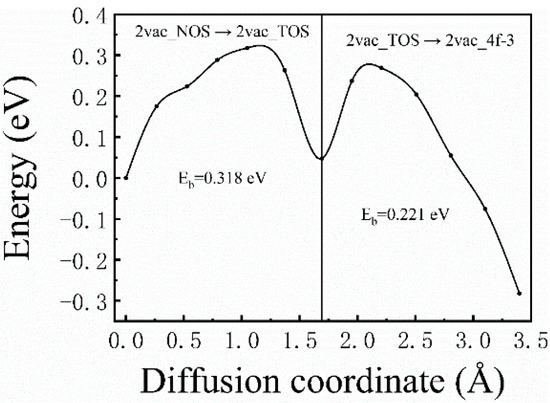 The corresponding diffusion barrier energies of 2vac_NOS → 2vac_TOS → 2vac_4f−3.