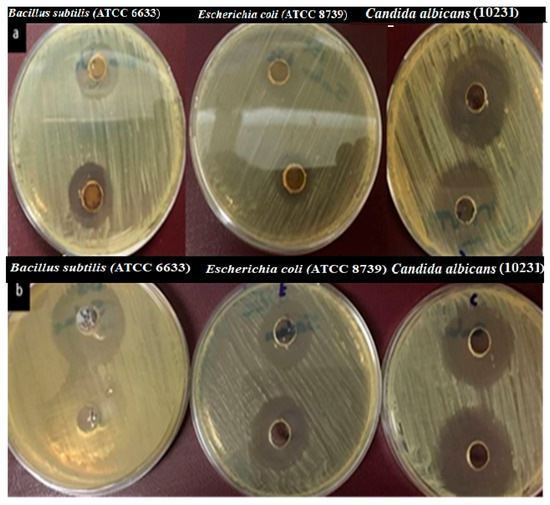 | Samples | Bacillus Subtilis (ATCC 6633) | Escherichia Coli (ATCC 8739) | Candida Albicans (ATCC 10231) |