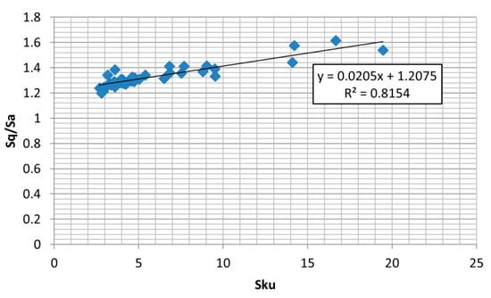 Dependence between parameters Sku and Sq/Sa.