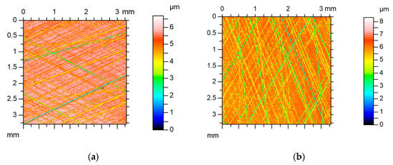 However, the distribution of surface height is often different from Gaussian [20,22,23]. Specifically, two-process surfaces characterized by negative values of the skewness, Ssk, and high values of the kurtosis, Sku, are of high functional importance [16,24,25,26]. Two-process textures have traces of two processes (machining or wear). The contact of deterministic surfaces is also possible.