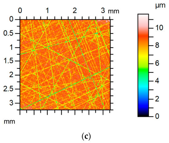 Sdq, which is a root mean square gradient, is the hybrid parameter. Surface slope is used in assessing surface ability to the plastic deformation [28,29,30]. Slope is also related to friction, hydrodynamic lubrication, reflectance [31], and strength of adhesive joints [32]. The Sdq parameter is computed using the following formula: