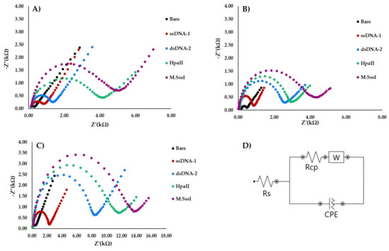 - Yin, H.; Yin, H.; Xu, Z.; Chen, L.; Zhang, D.; Ai, S. An electrochemical assay for DNA methylation, methyltransferase activity and inhibitor screening based on methyl binding domain protein. Biosens. Bioelectron. 2013, 41, 492–497. [Google Scholar] [CrossRef]