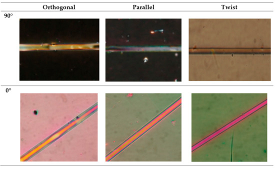 - Kim, Y.; Lee, M.; Wang, H.S.; Song, K. The effect of surface polarity of glass on liquid crystal alignment. Liq. Cryst. 2017, 45, 757–764. [Google Scholar] [CrossRef]